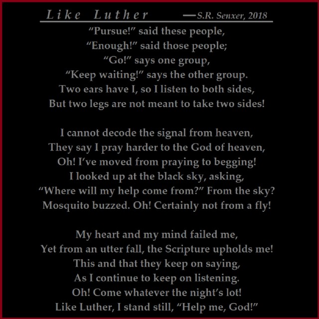 Like Luther, I stand still, "Help me, God! "