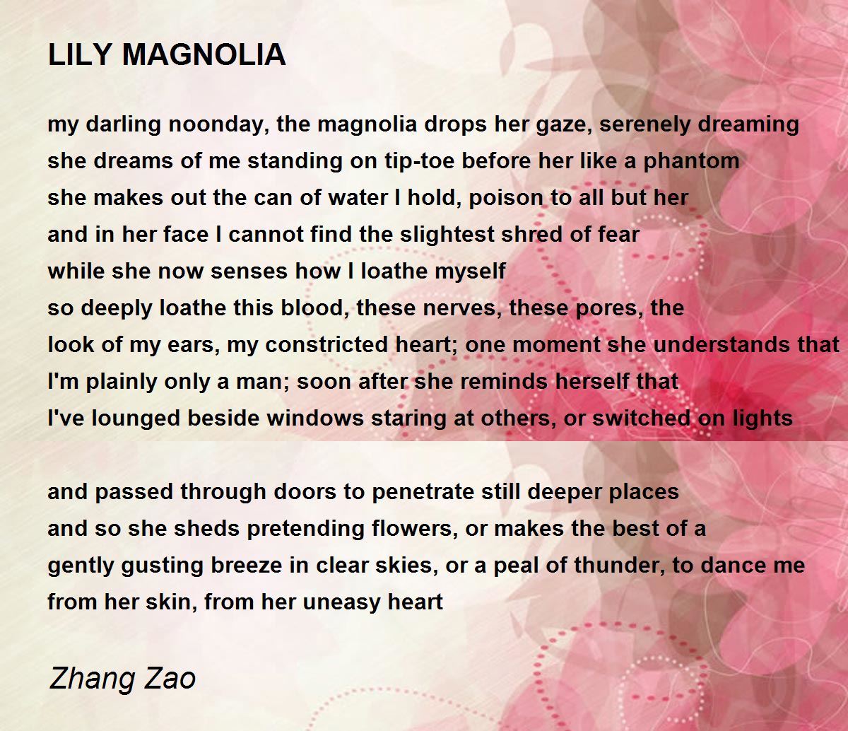 my darling noonday, the magnolia drops her gaze, serenely dreaming