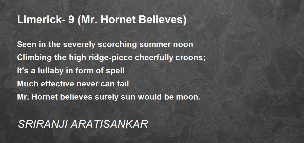 'Mr. Hornet believes surely sun would be moon'. Wow... beautiful poem. Loved it. Thanks for sharing.