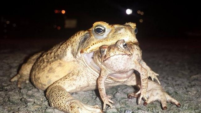 There was a little toad being chased by a snake