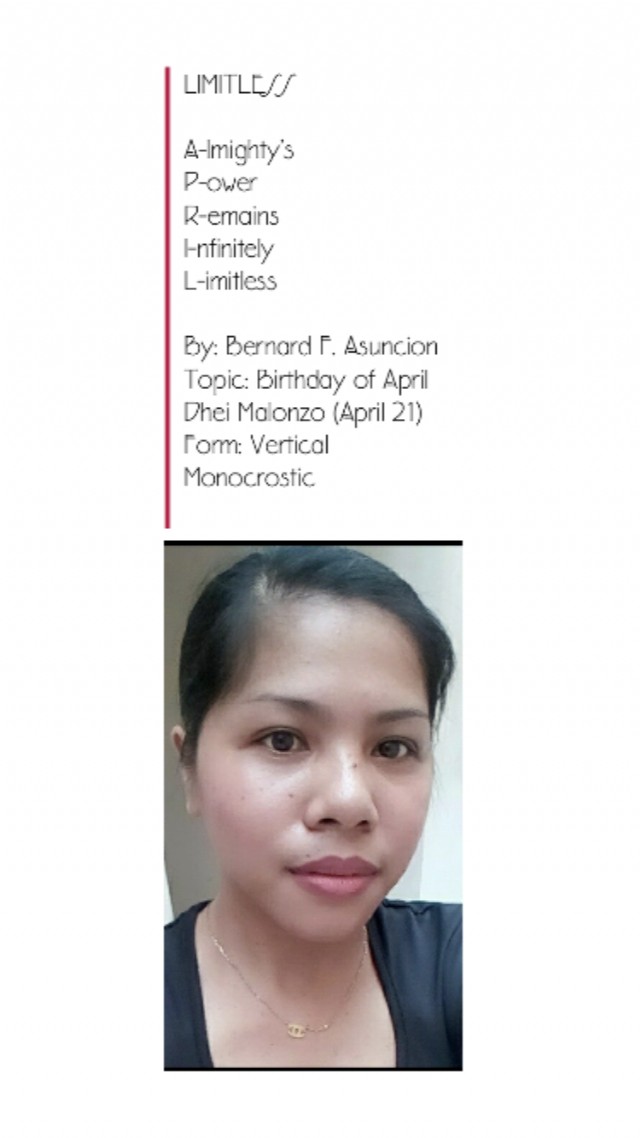Topic: Birthday of April Dhei Malonzo (April 21)