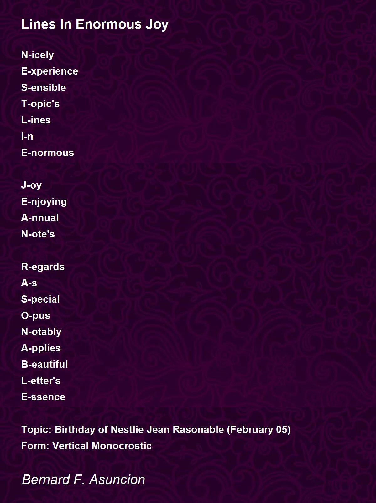 Topic: Birthday of Nestlie Jean Rasonable (February 05)