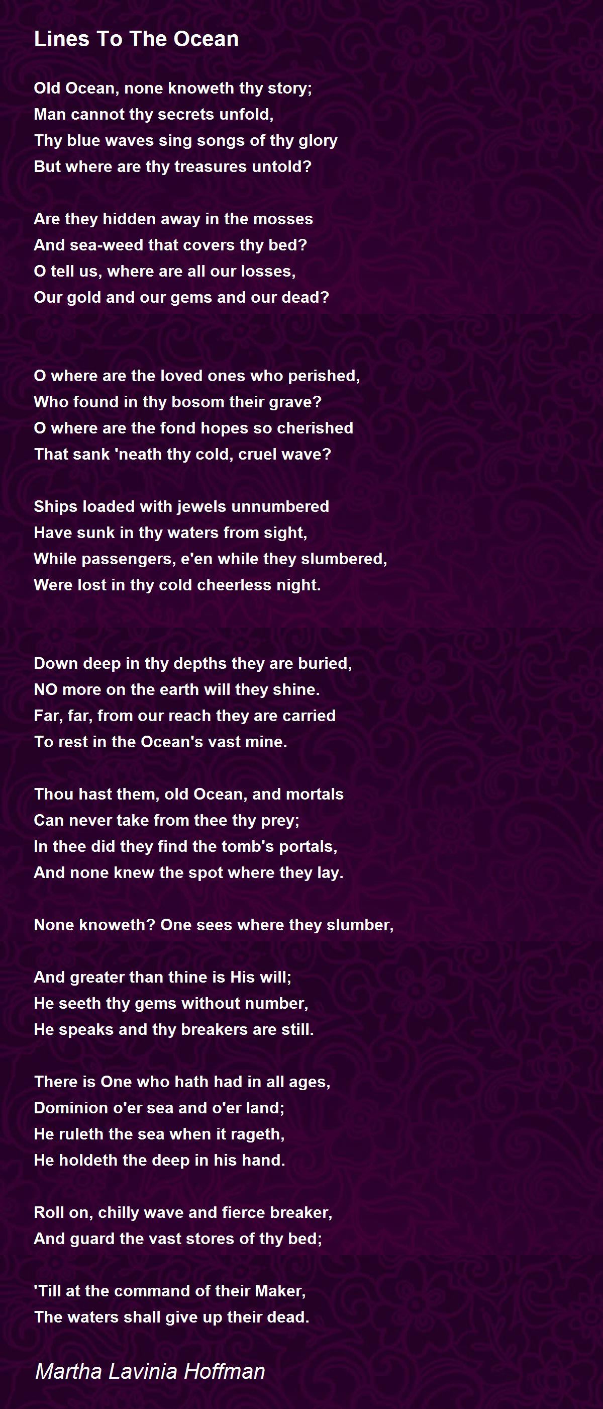 Old Ocean, none knoweth thy story;
