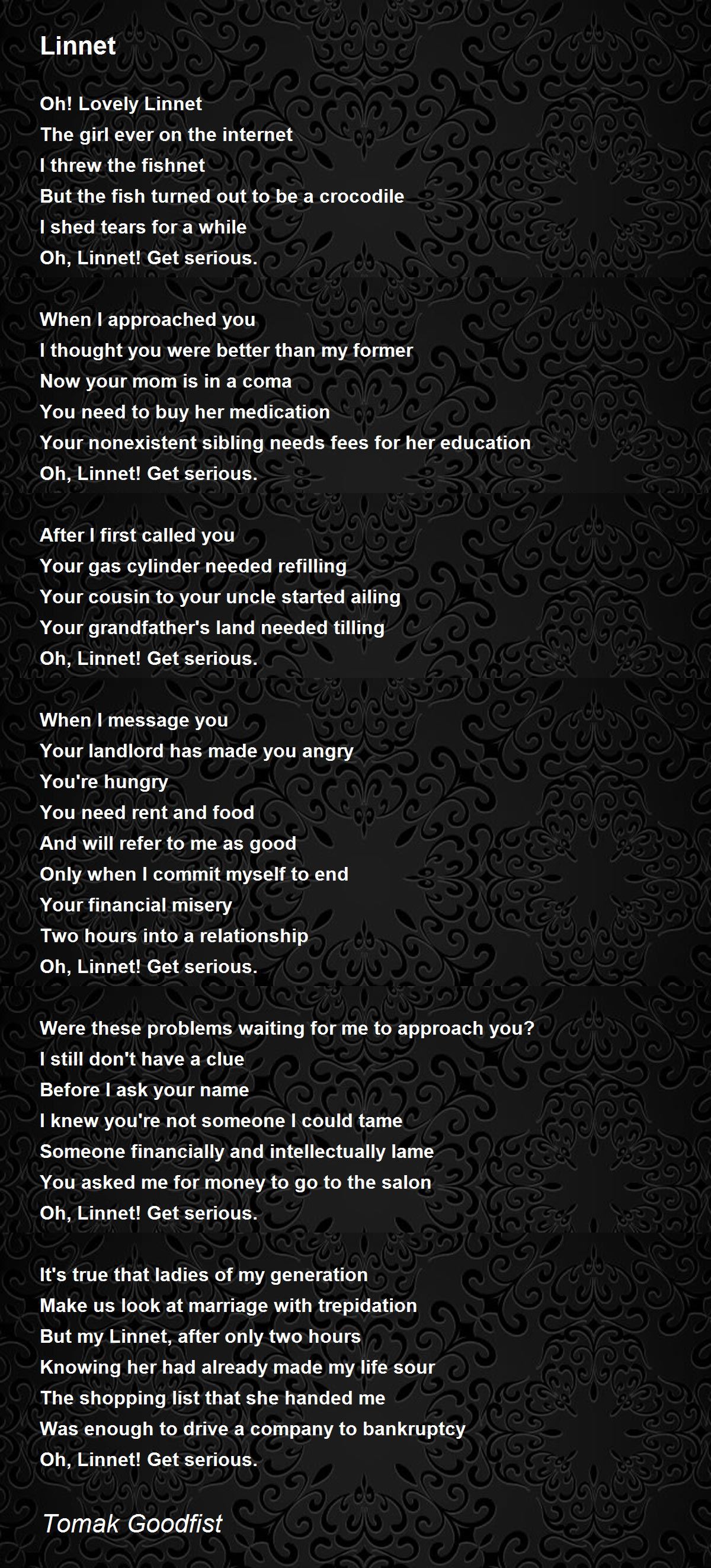 Oh, Linnet! Get serious.