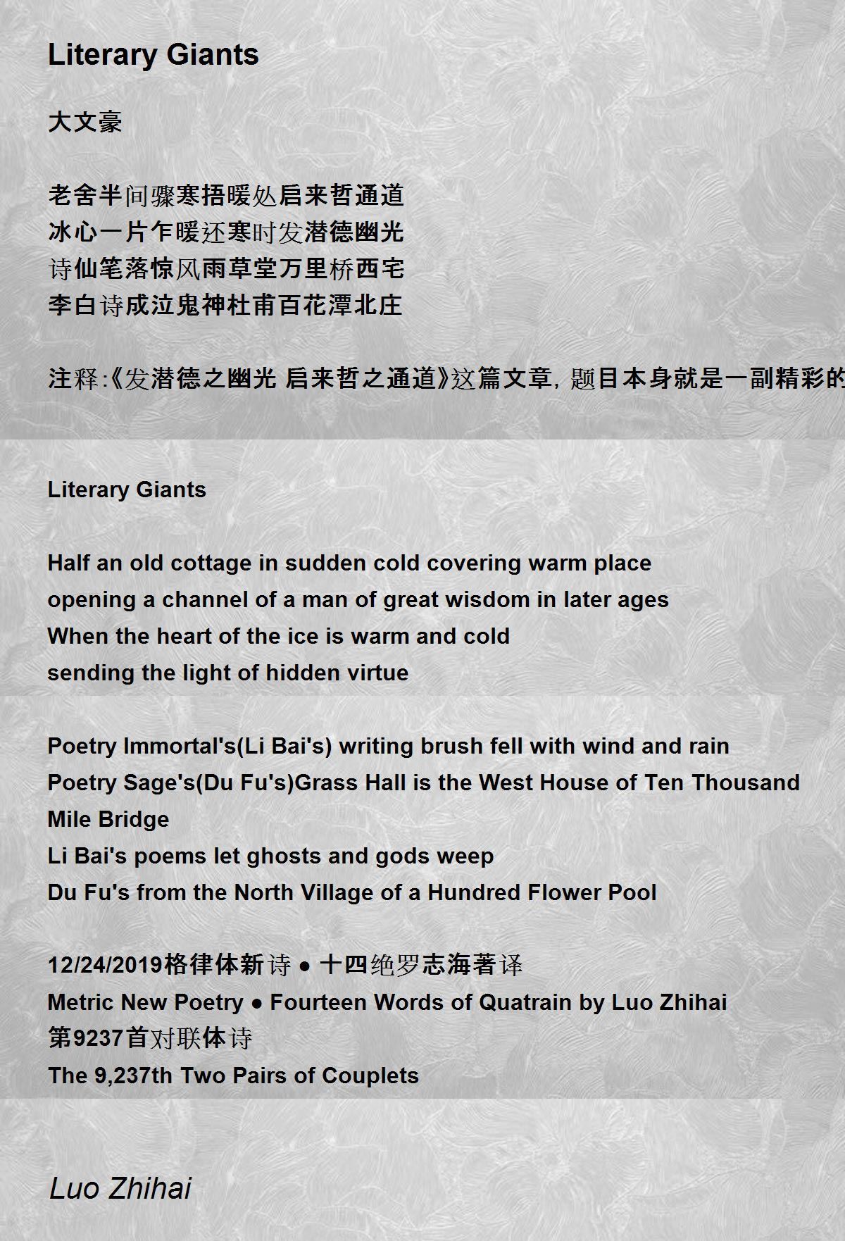 12/24/2019格律体新诗 ● 十四绝罗志海著译