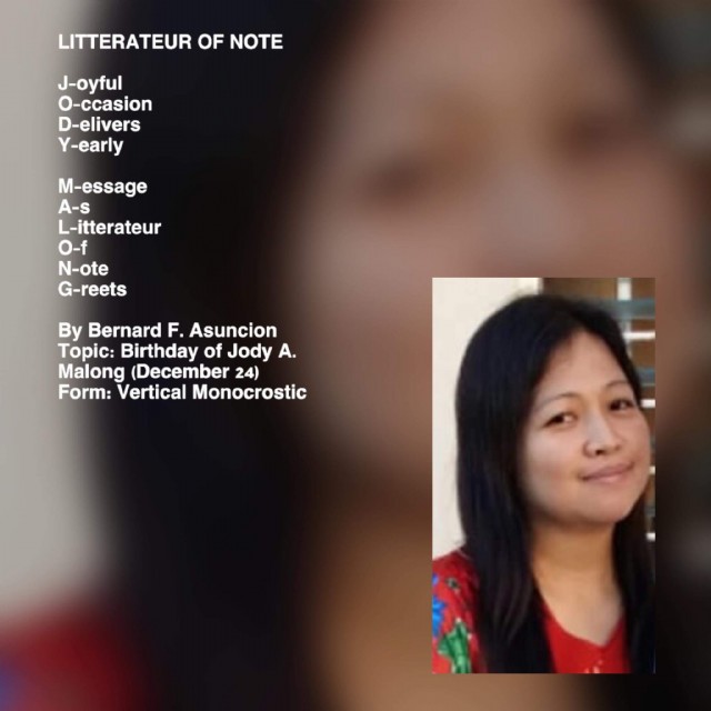 Topic: Birthday of Jody A. Malong (December 24)