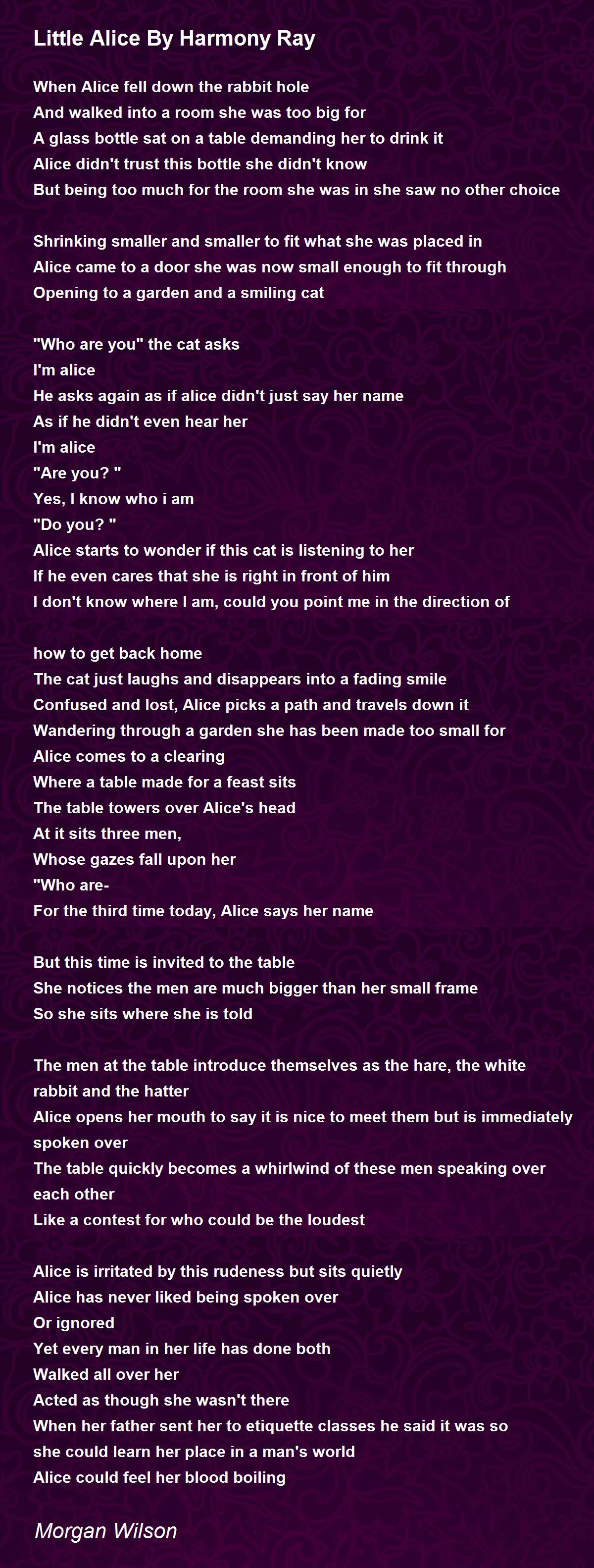 Alice opens her mouth to say it is nice to meet them but is immediately spoken over