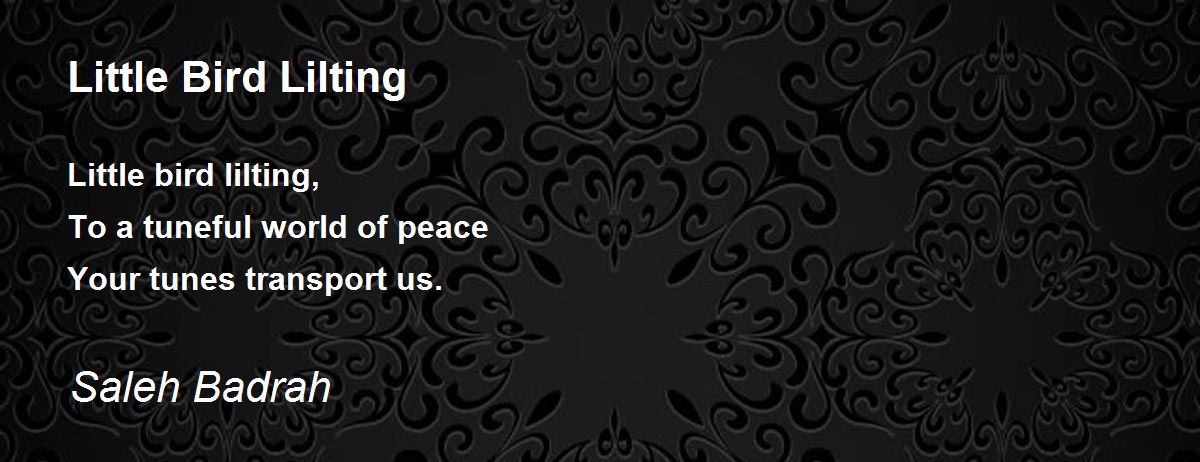 Little bird lilting, To a tuneful world of peace Your tunes transport us.