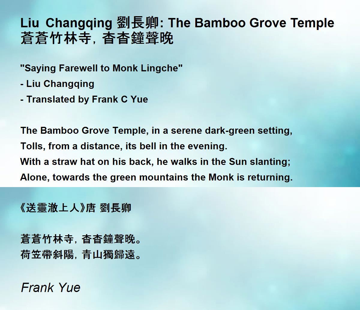 - Translated by Frank C Yue