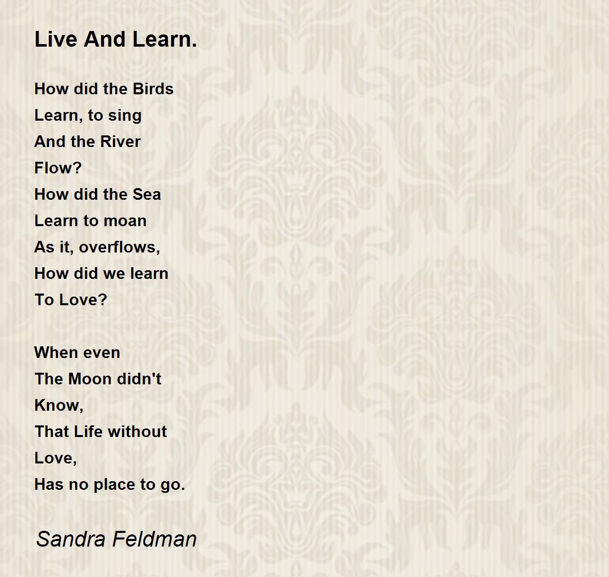 Absolutely finest poem, As long as we live we learn to live and to love. Enjoyed the flow in this fascinating poem. TOP Marks 5 Stars.