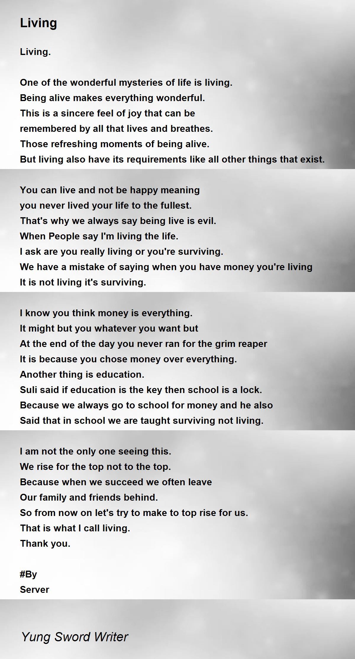 One of the wonderful mysteries of life is living.