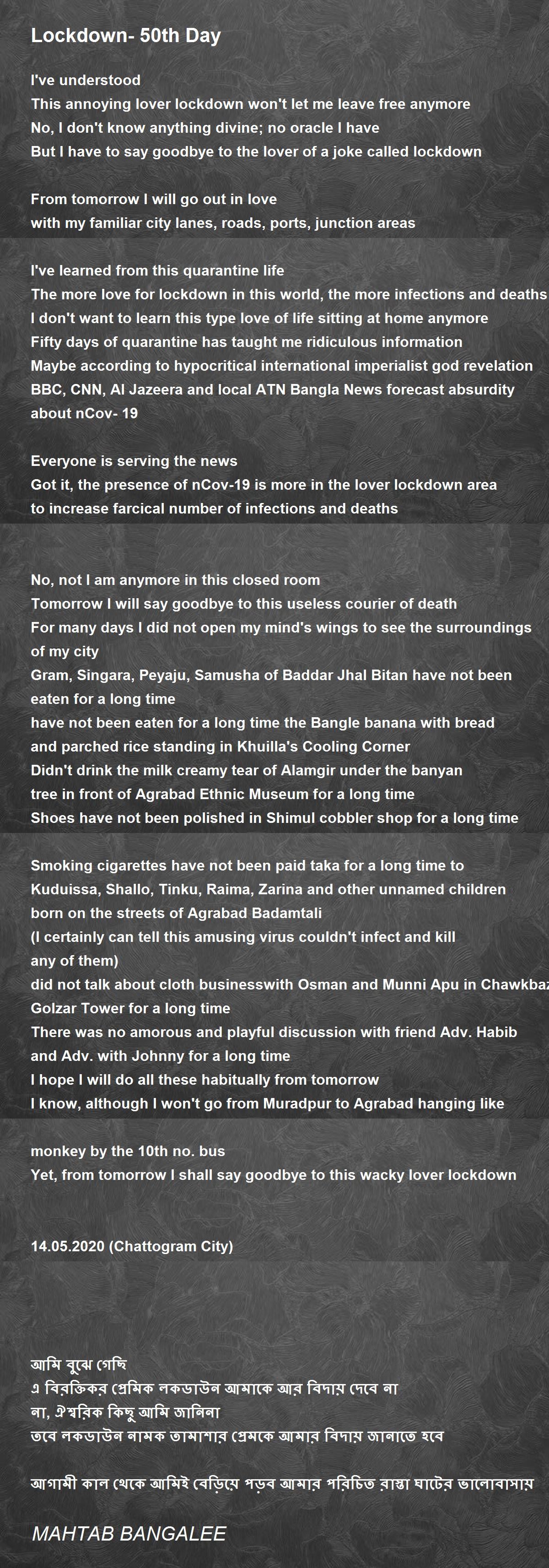 তবে লকডাউন নামক তামাশার প্রেমকে আমার বিদায় জানাতে হবে