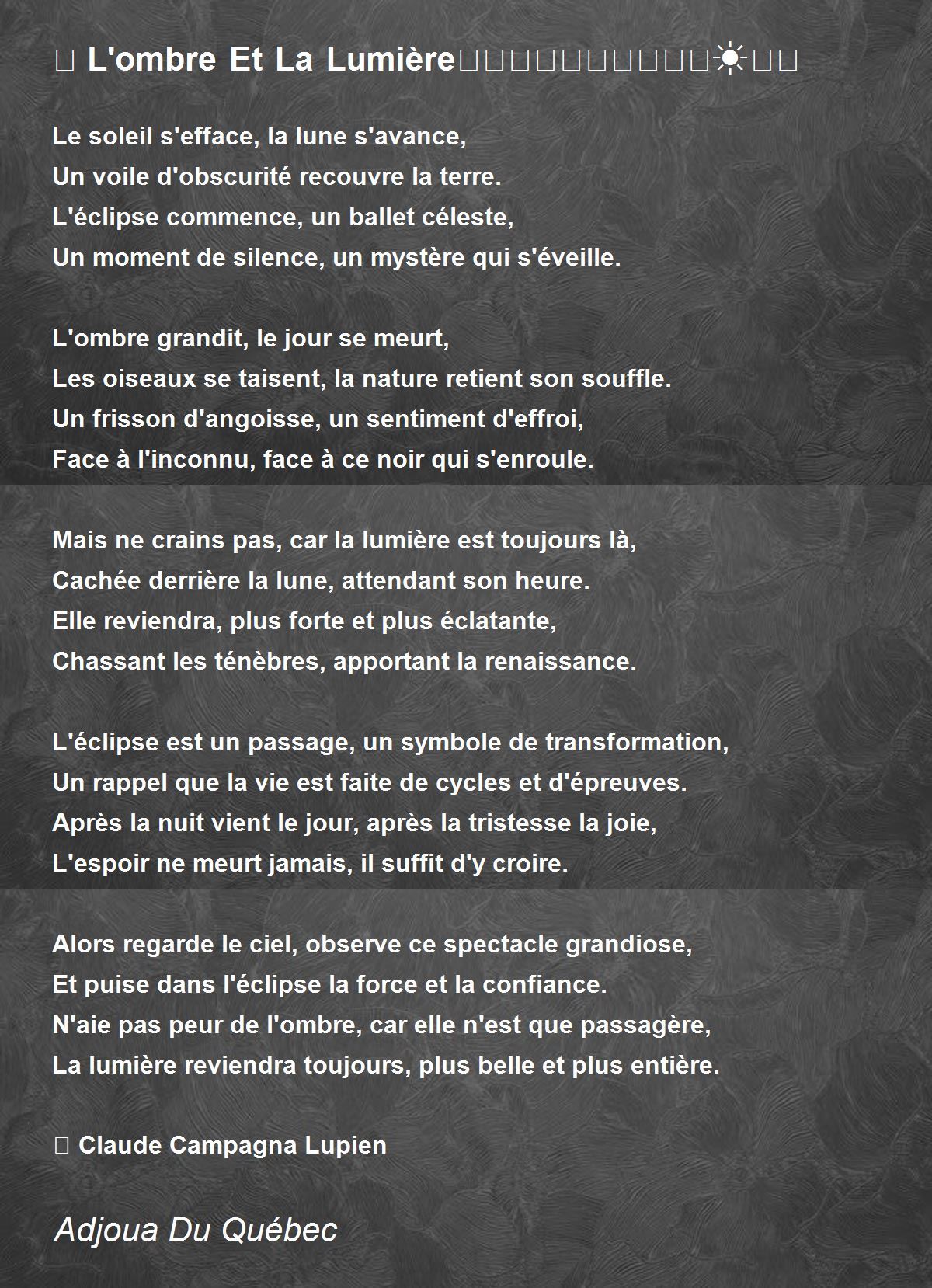 Et puise dans l'éclipse la force et la confiance.