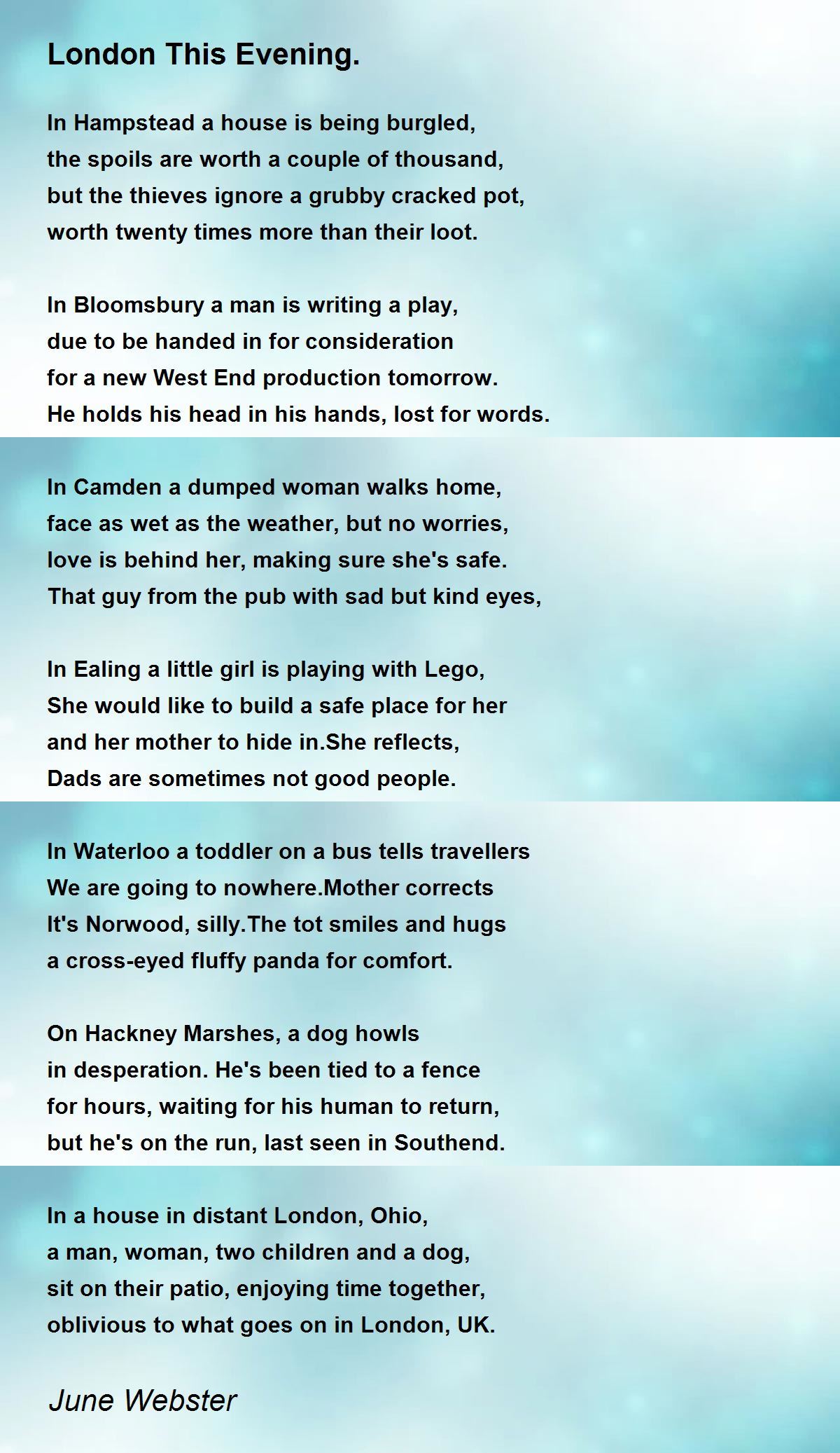 In Camden a dumped woman walks home,
