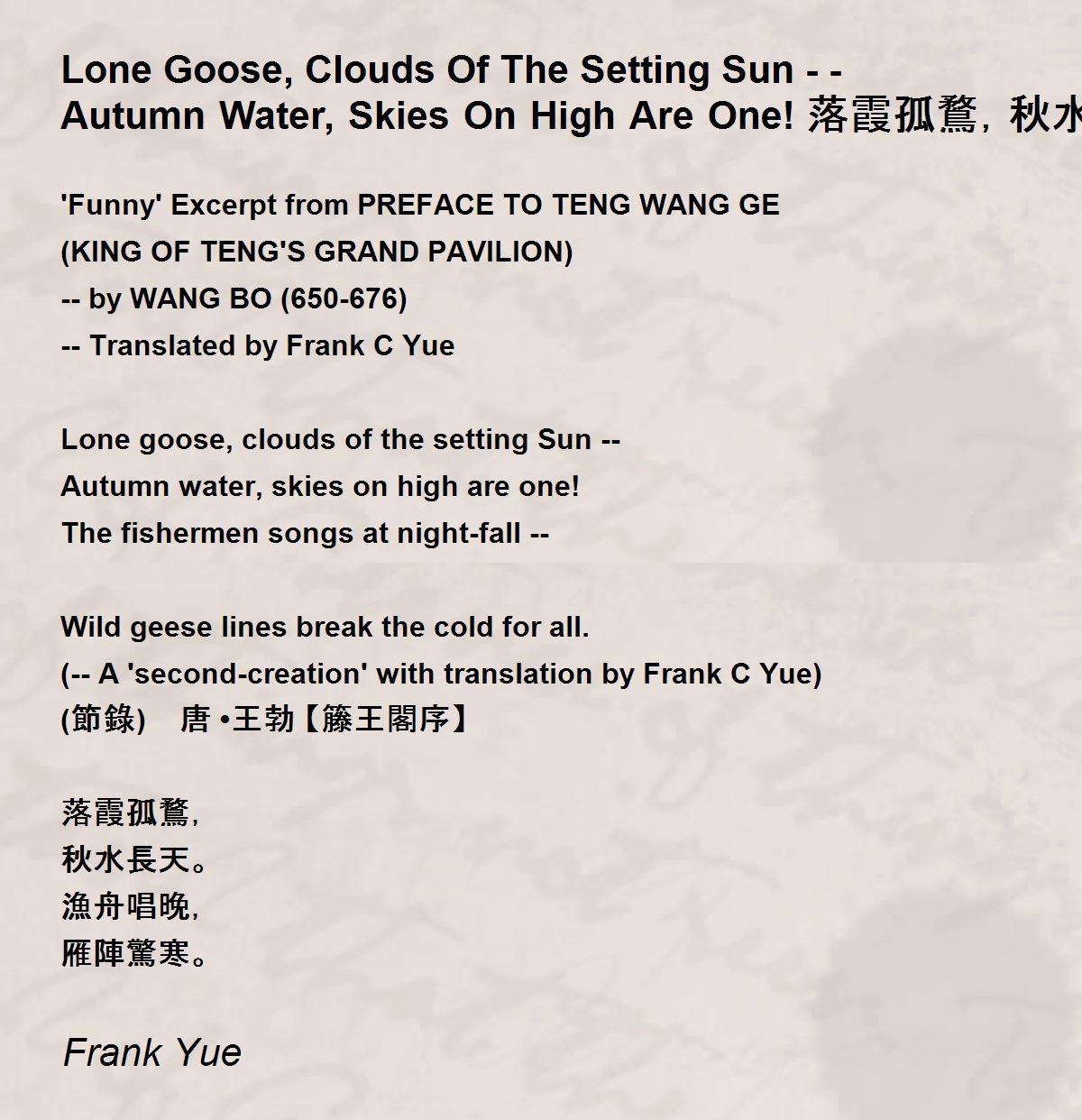 (-- A 'second-creation' with translation by Frank C Yue)