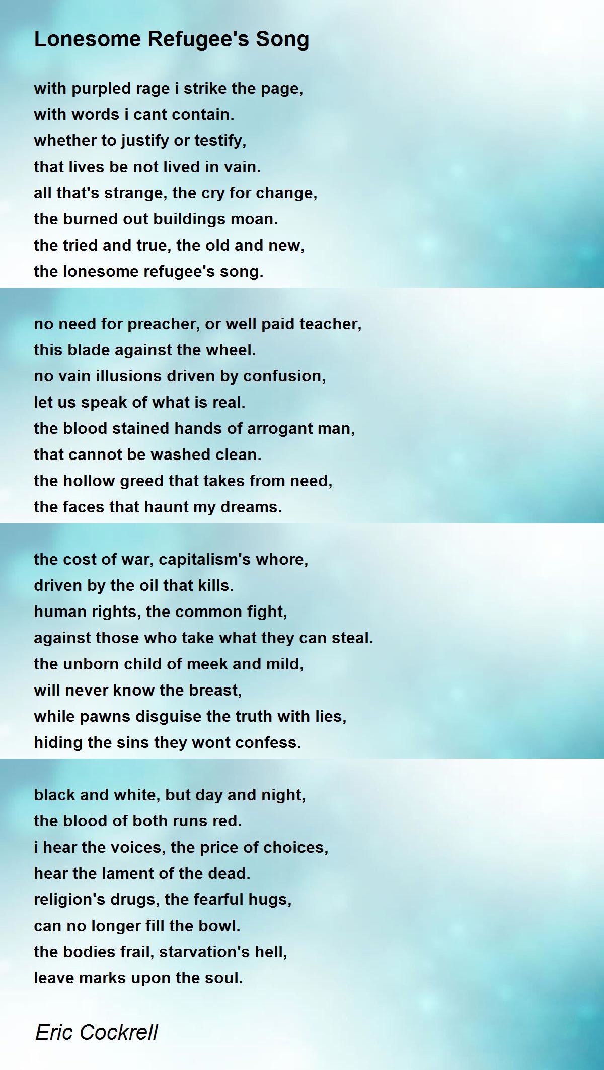 the lonesome refugee's song.