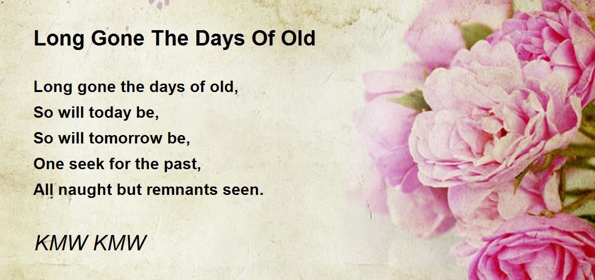 Long gone the days of old, So will today be, So will tomorrow be, One seek for the past, All naught but remnants seen.