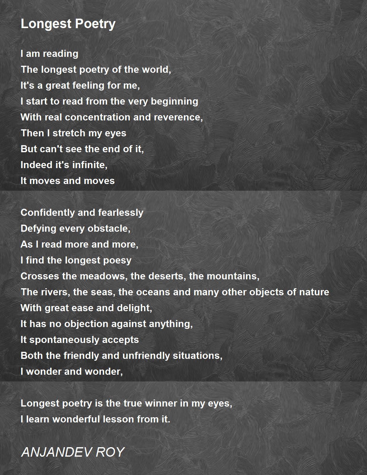 Longest Poetry is classical too and ever lasting to inspire mankind to survive with hope in the world!