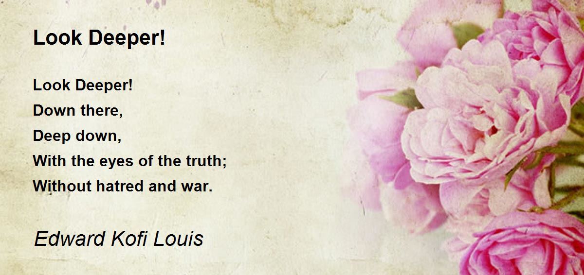 Look Deeper! Down there, Deep down, With the eyes of the truth; Without hatred and war.