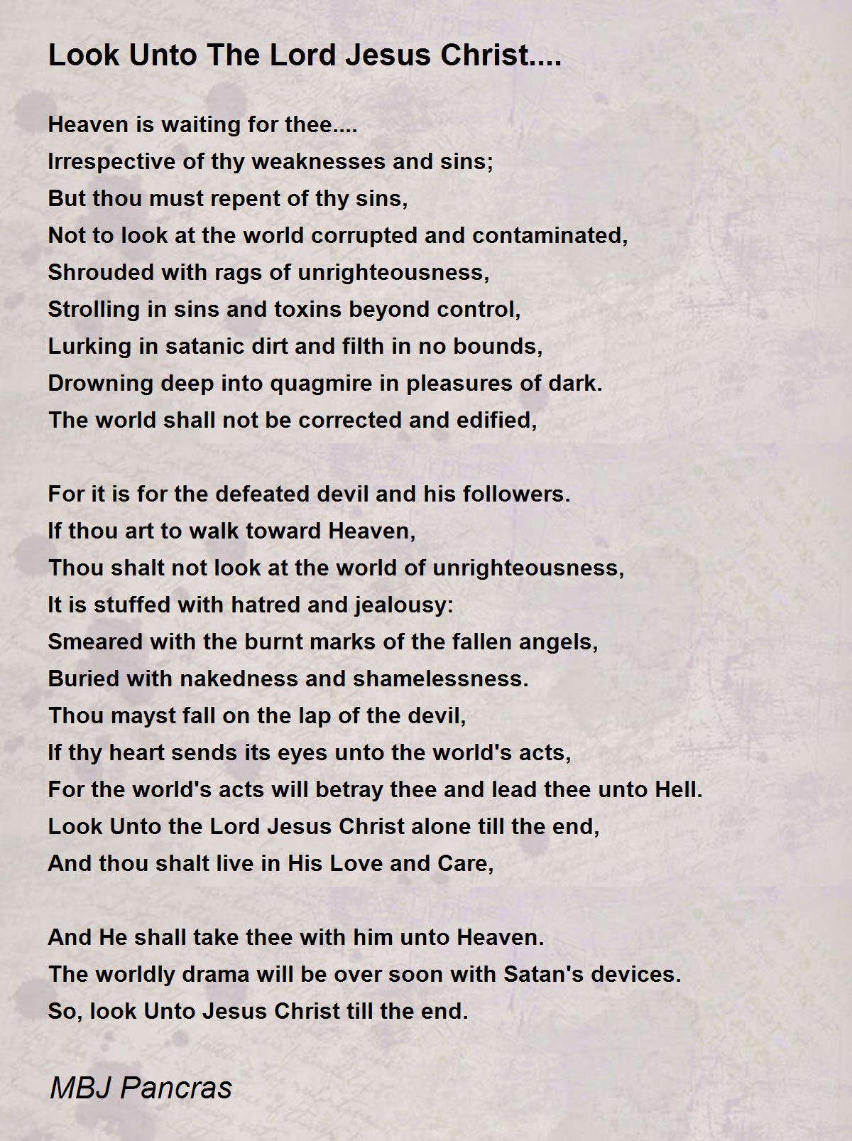 Look Unto the Lord Jesus Christ alone till the end,