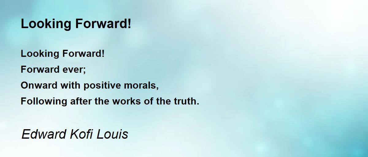 Looking Forward! Forward ever; Onward with positive morals, Following after the works of the truth.