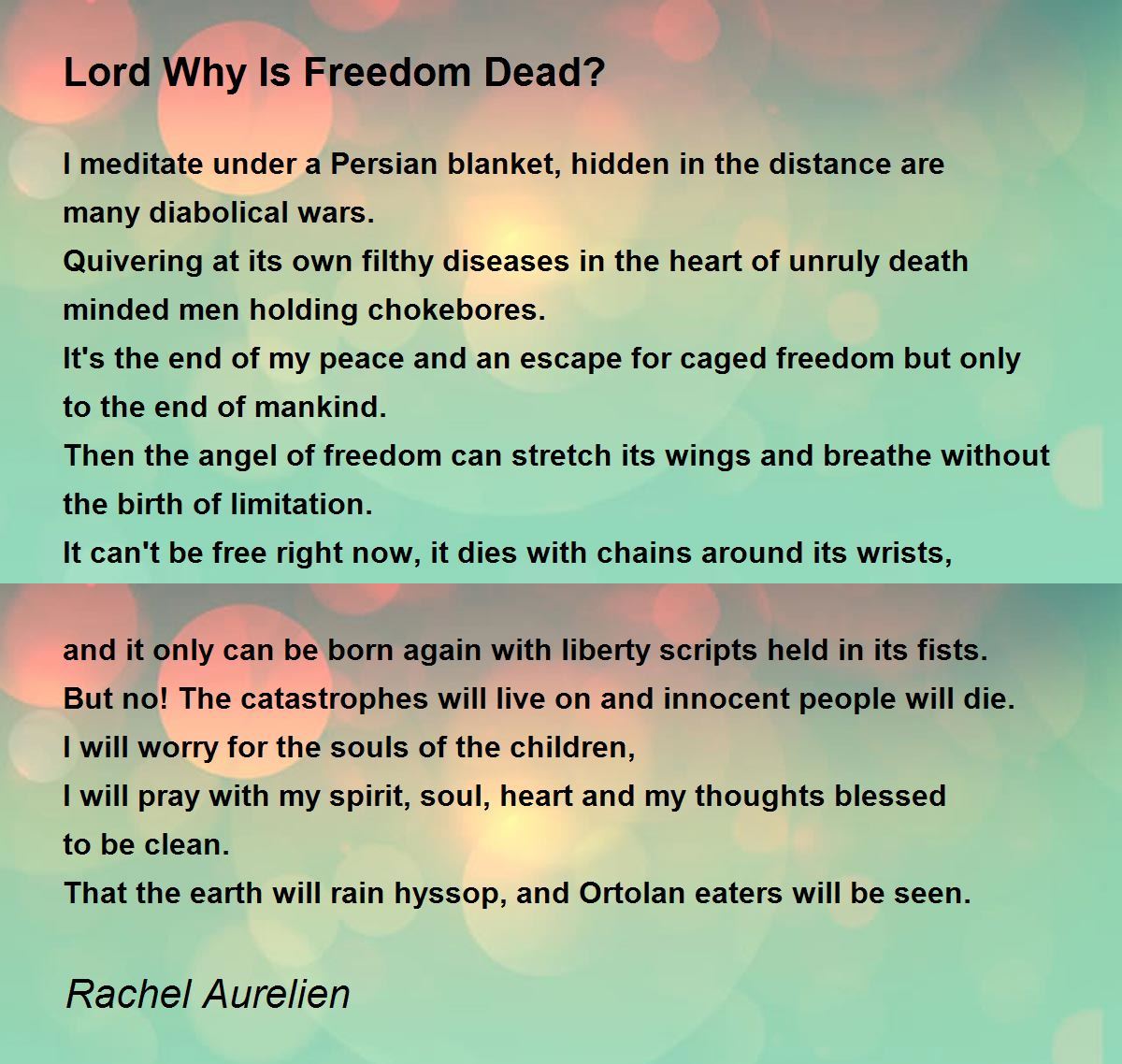 Then the angel of freedom can stretch its wings and breathe without the birth of limitation.