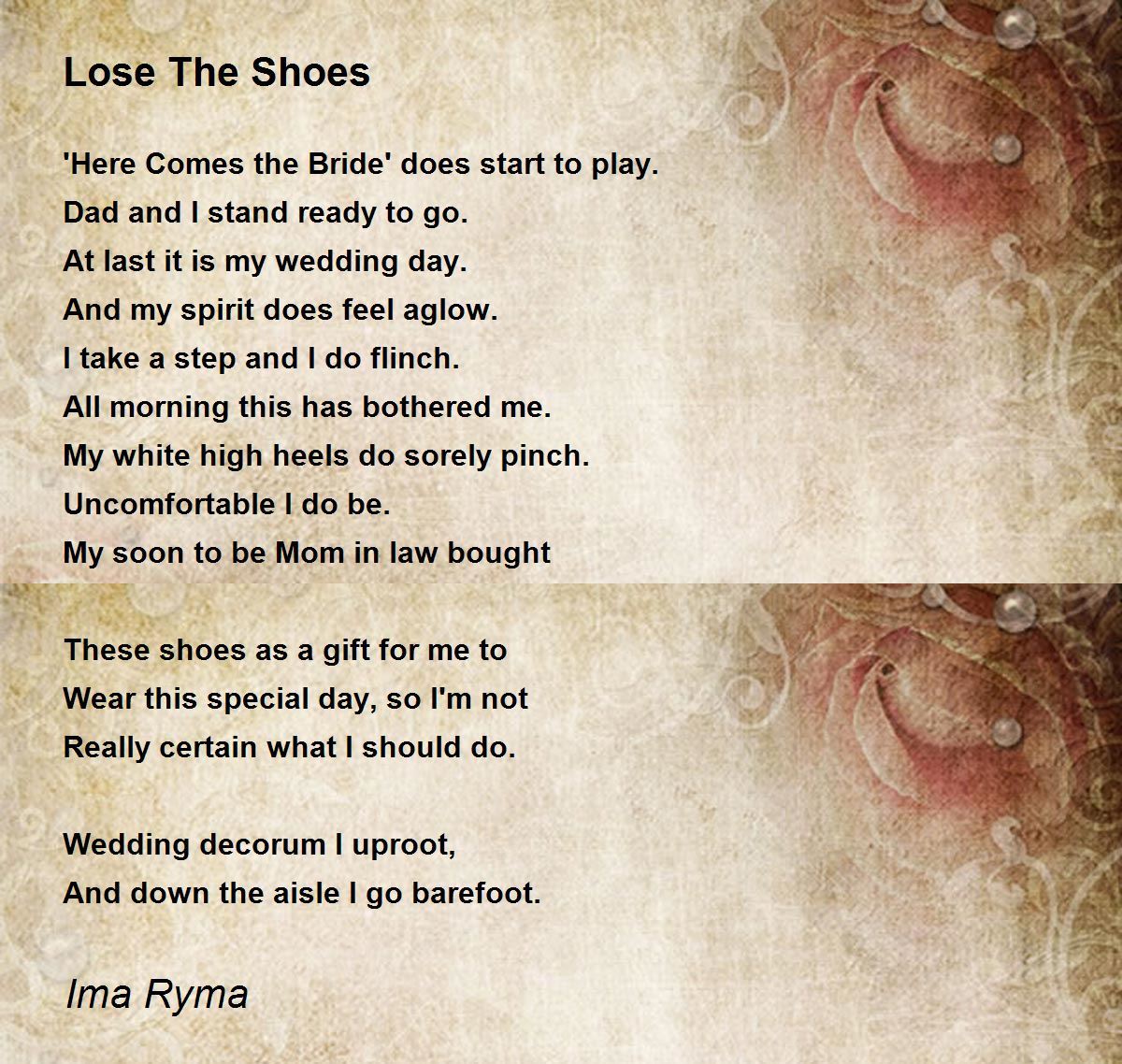My white high heels do sorely pinch.