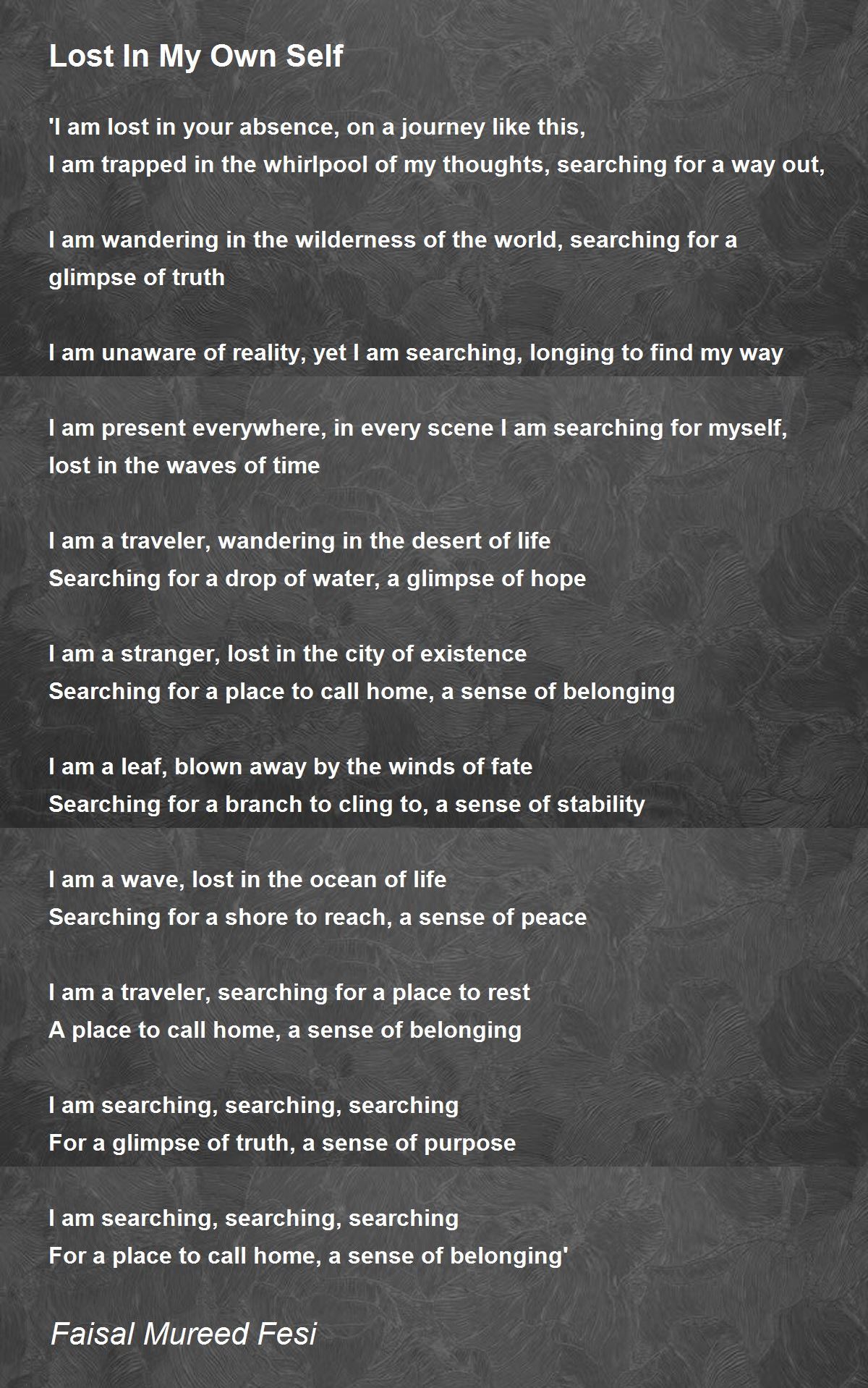 I am a stranger, lost in the city of existence