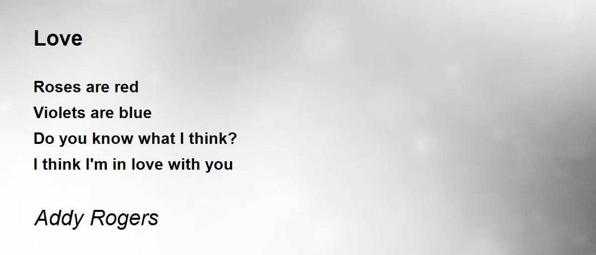 Roses are red Violets are blue Do you know what I think? I think I'm in love with you