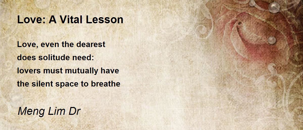 Love, even the dearest does solitude need: lovers must mutually have the silent space to breathe