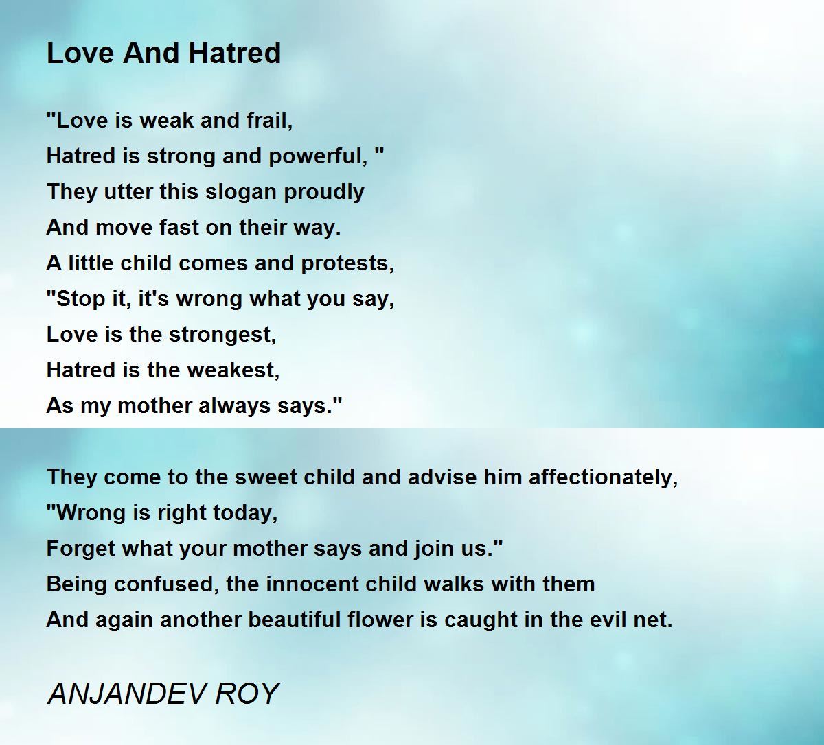 Hatred is strong and powerful, "