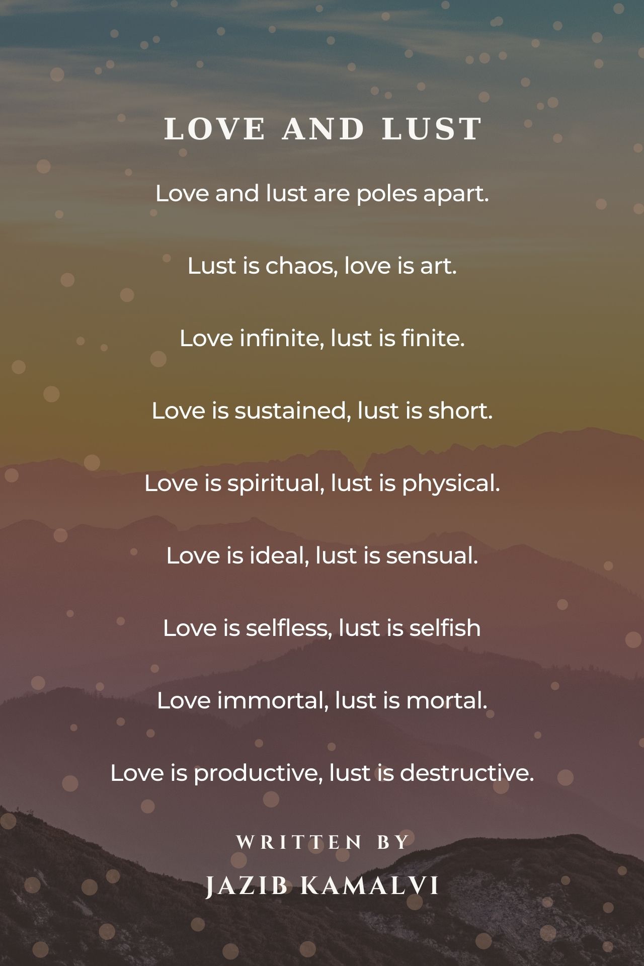 Lust starts from black holes of eyes, love from conscientious part of heart.