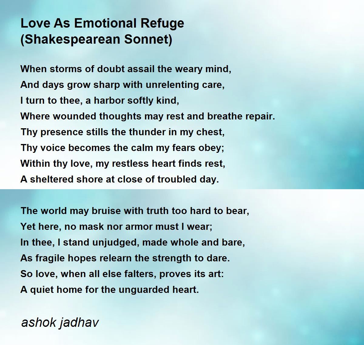 Love As Emotional Refuge (Shakespearean Sonnet) Poem by ashok jadhav