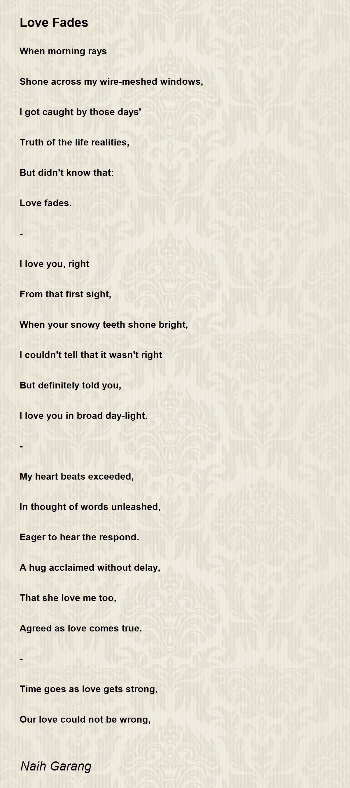 Indeed love fades.