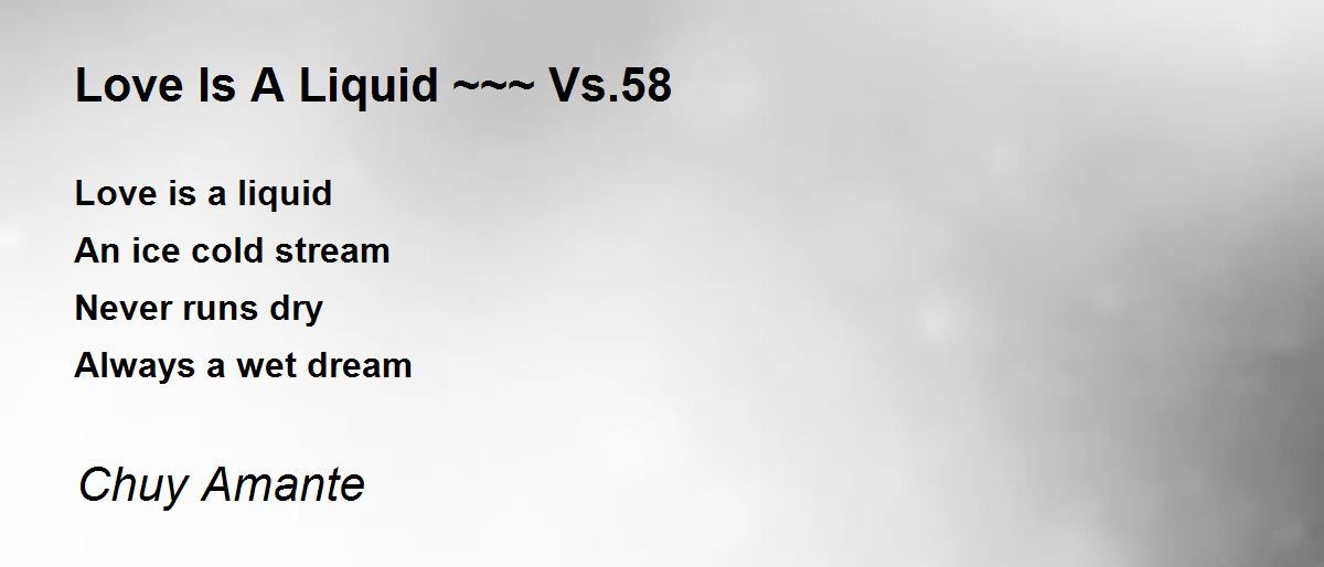 Love is a liquid An ice cold stream Never runs dry Always a wet dream