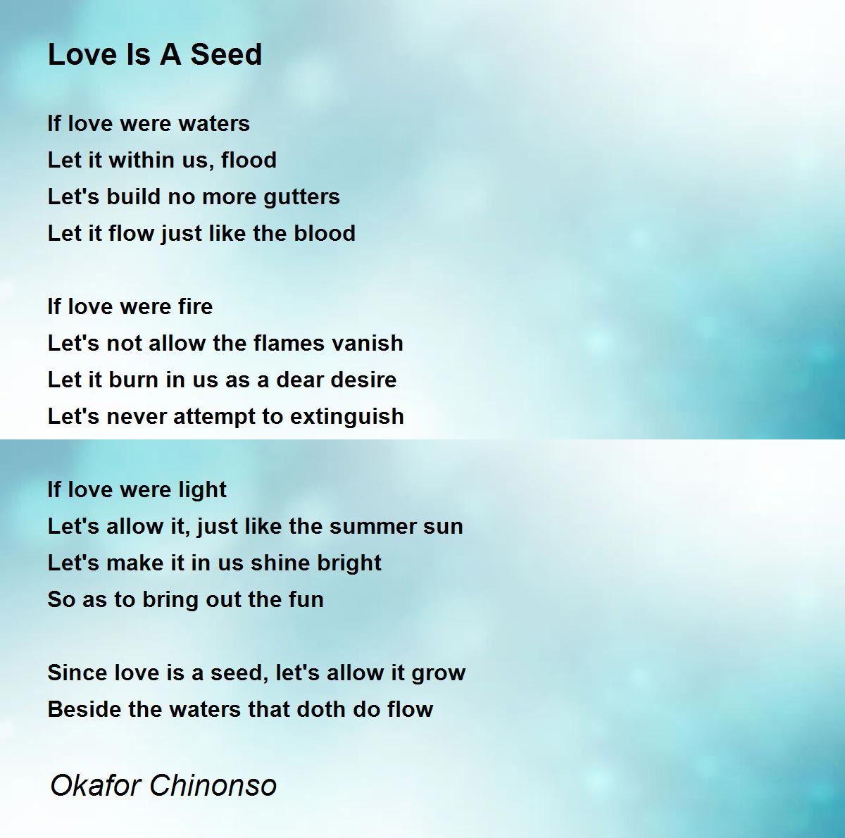 Since love is a seed, let's allow it grow