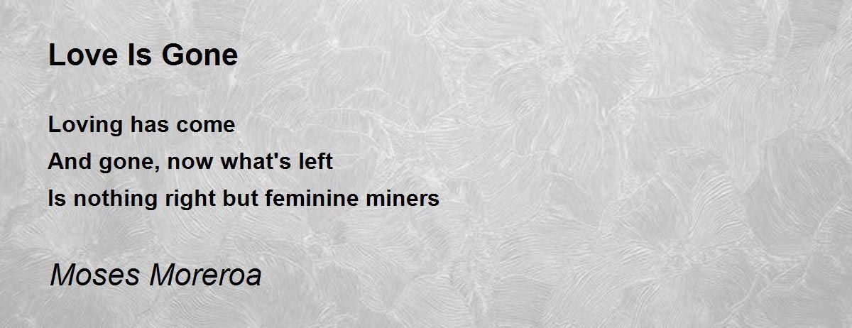 Loving has come And gone, now what's left Is nothing right but feminine miners