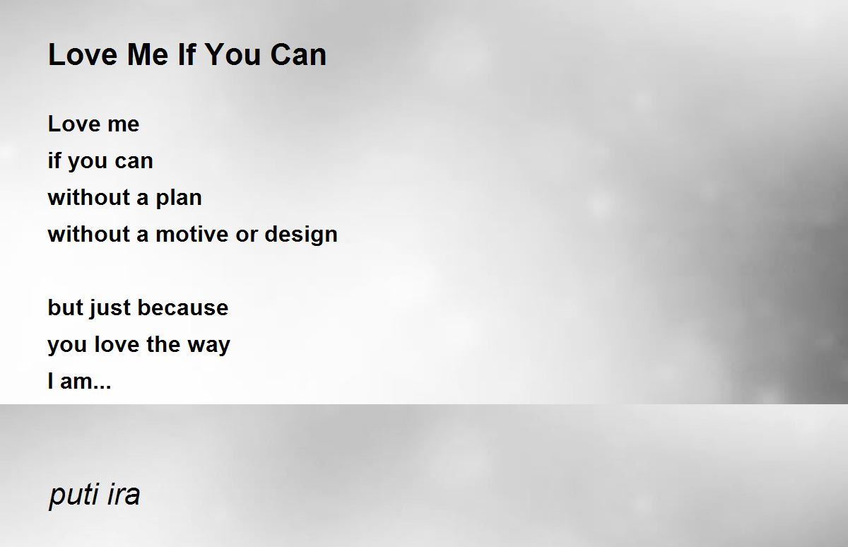 Love me if you can without a plan without a motive or design but just because you love the way I am...