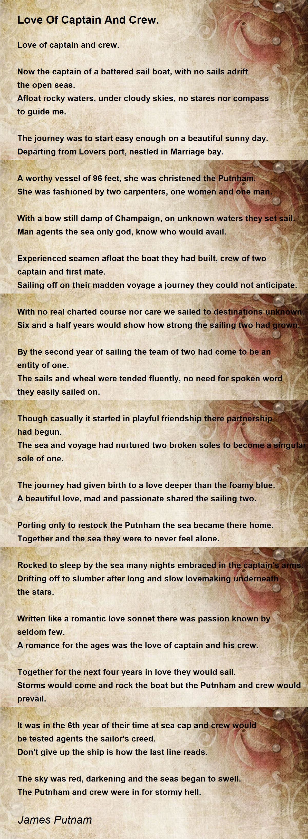 Rocked to sleep by the sea many nights embraced in the captain's arms.
