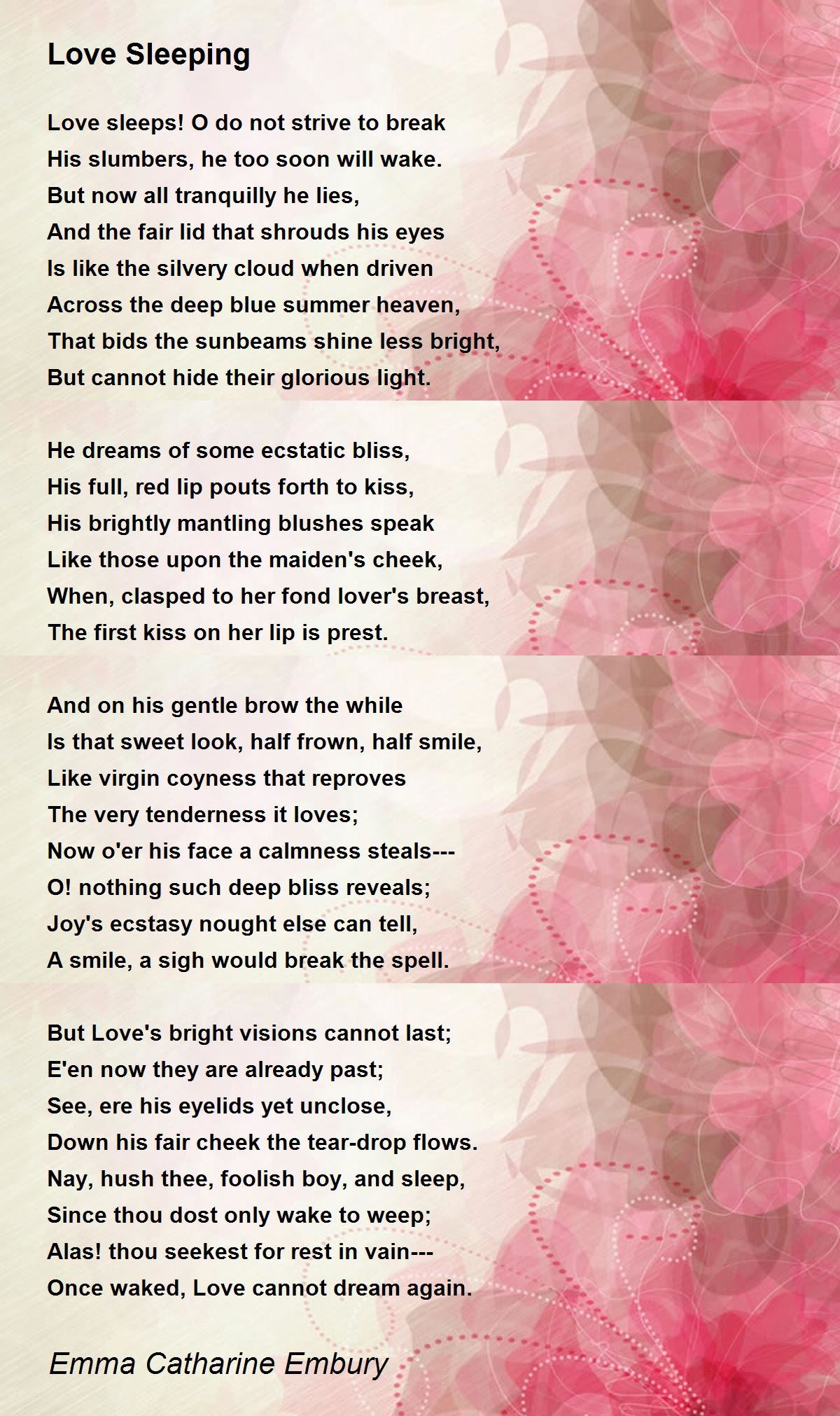 Love sleeps! O do not strive to break