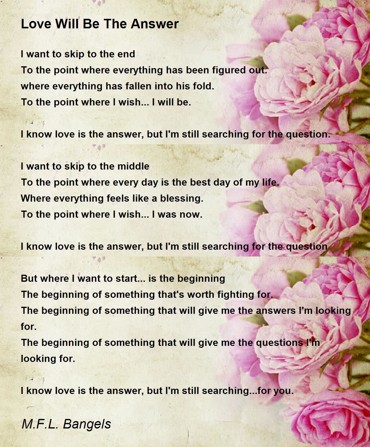 I know love is the answer, but I'm still searching...for you.