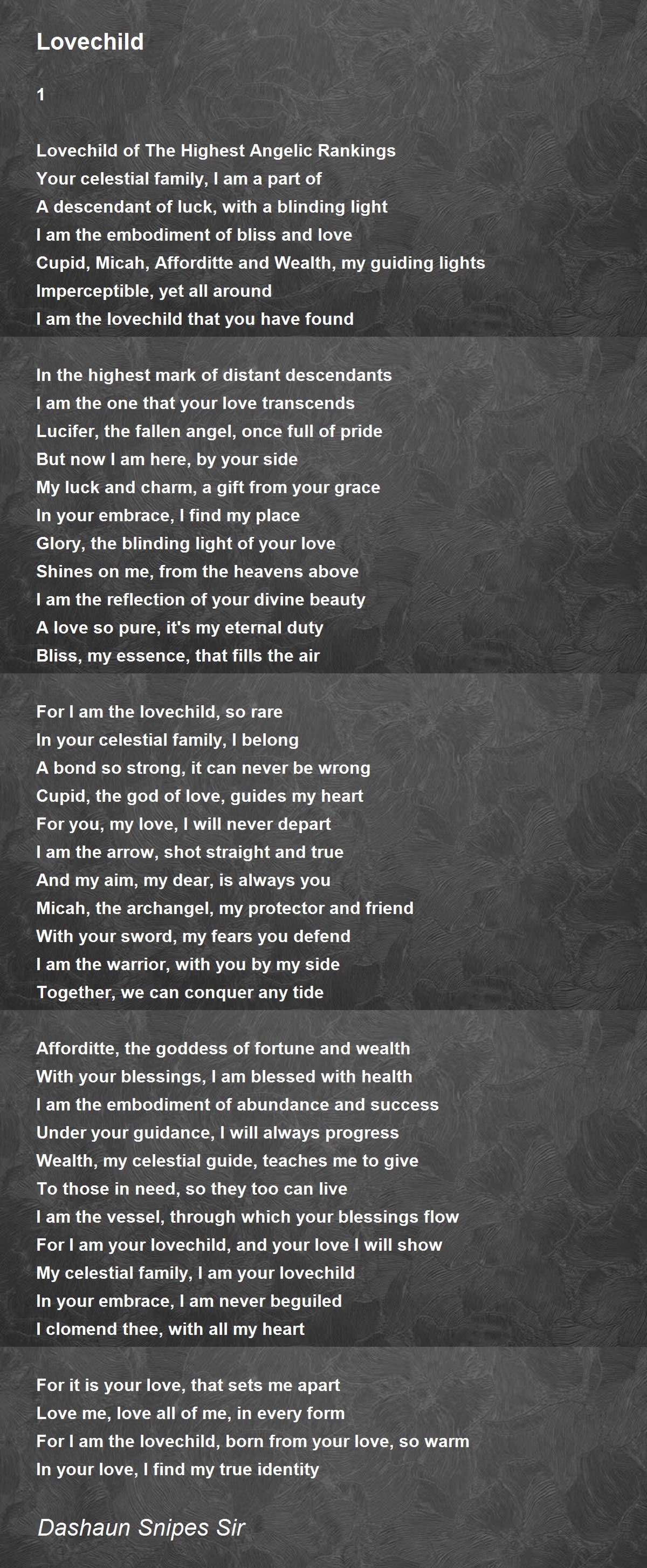 For I am the lovechild, born from your love, so warm