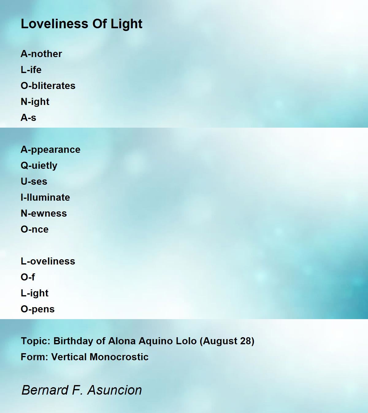 Topic: Birthday of Alona Aquino Lolo (August 28)