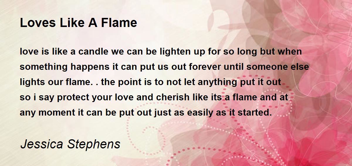 love is like a candle we can be lighten up for so long but when something happens it can put us out forever until someone else lights our flame..the point is to not let anything put it out so i say protect your love and cherish like its a flame and at any moment it can be put out just as easily as it started.