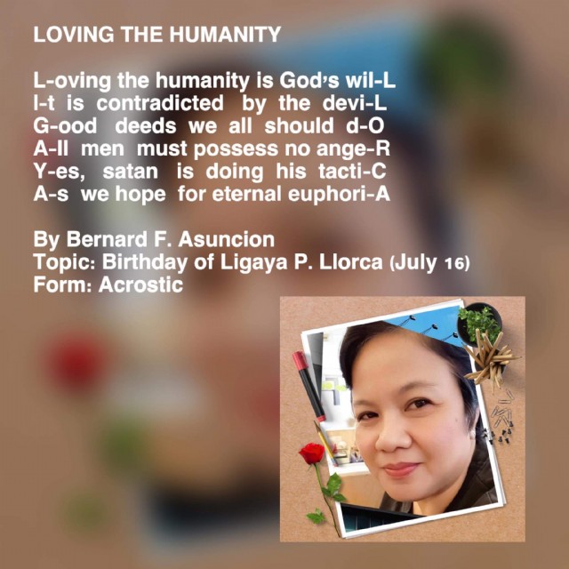 Topic: Birthday of Ligaya P. Llorca (July 16)