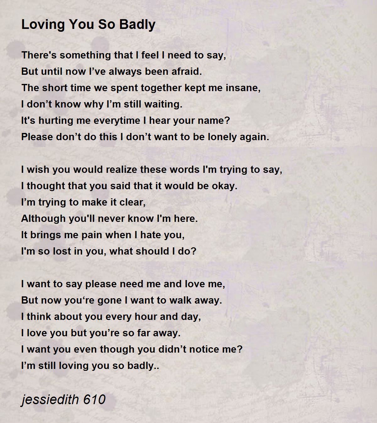 I’m still loving you so badly..