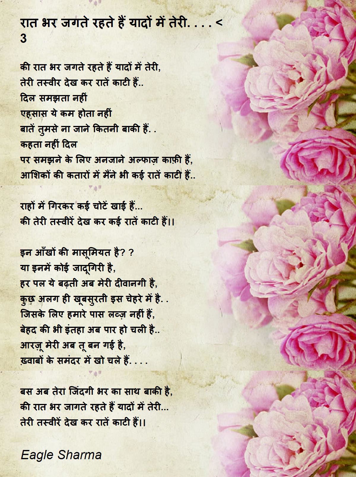 की रात भर जगते रहते हैं यादों में तेरी,
