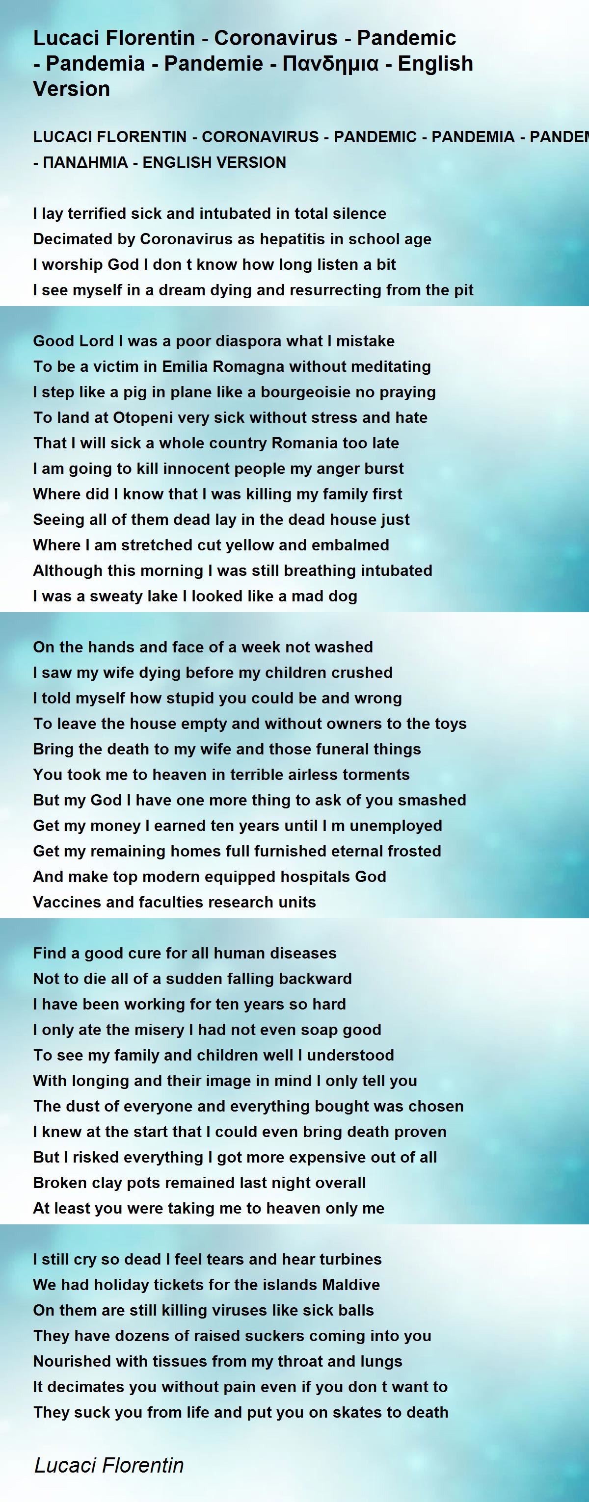 LUCACI FLORENTIN - CORONAVIRUS - PANDEMIC - PANDEMIA - PANDEMIE - ΠΑΝΔΗΜΙΑ - ENGLISH VERSION