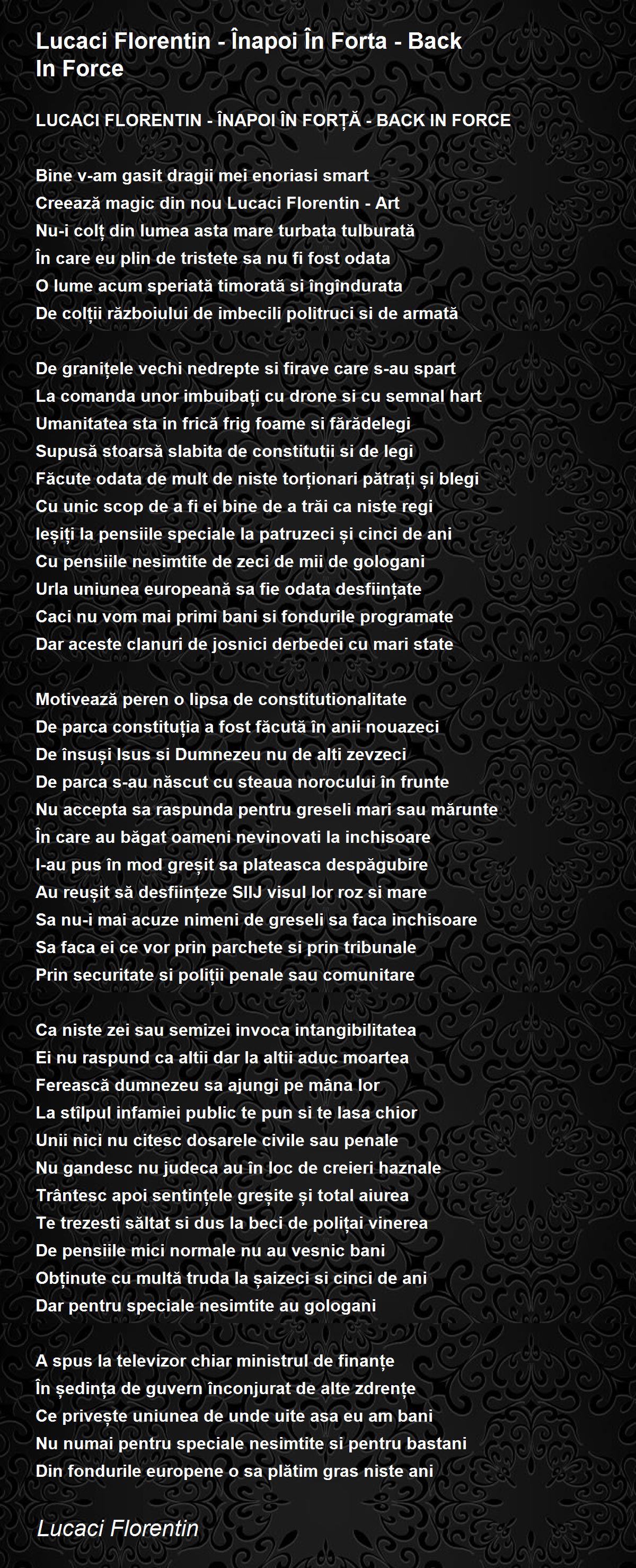 LUCACI FLORENTIN - ÎNAPOI ÎN FORȚĂ - BACK IN FORCE