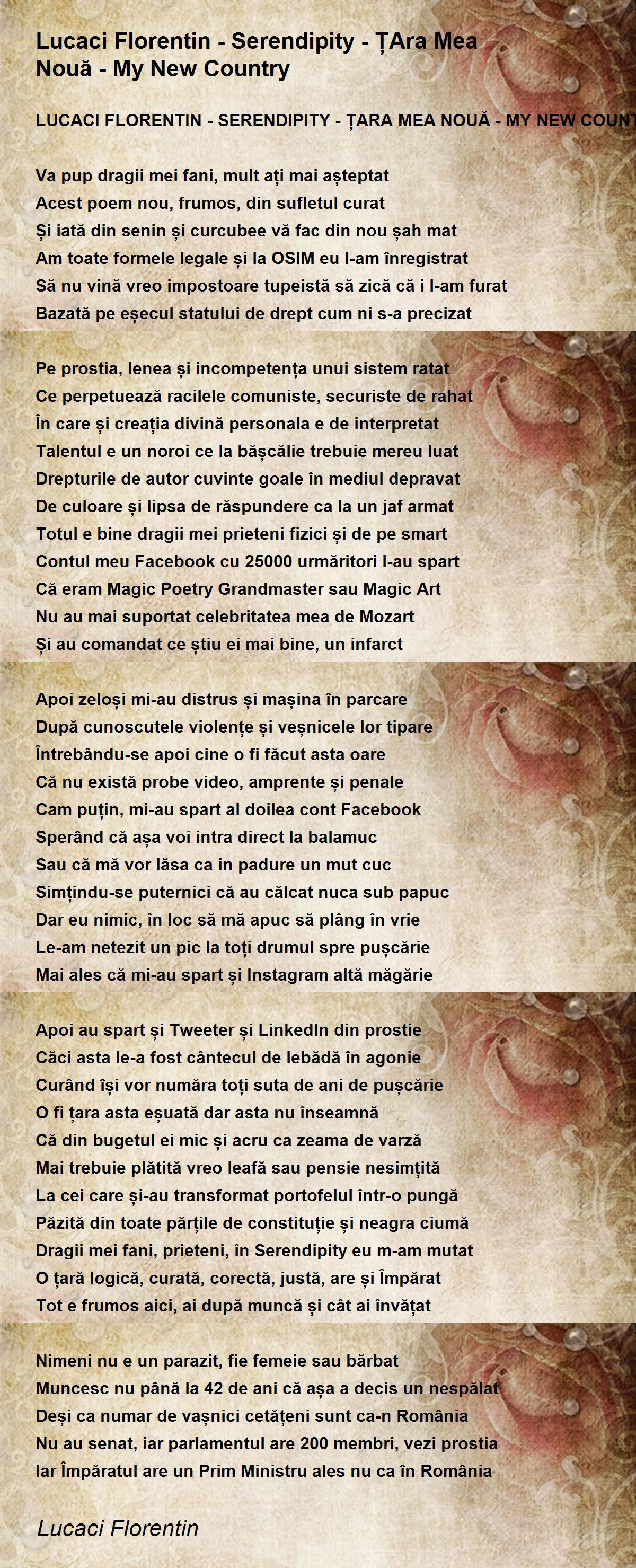 LUCACI FLORENTIN - SERENDIPITY - ȚARA MEA NOUĂ - MY NEW COUNTRY